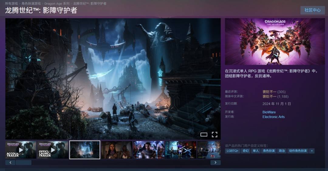 令人唏嘘的是,EA曾公开希望将《龙腾世纪》打造成价值十亿美元级别的旗舰IP。但从目前的表现来看,这一愿景似乎越来越遥远。《影障守护者》不仅没能提升IP影响力,反而成为一个“如何失败”的典型案例,引发业界与玩家持续反思。