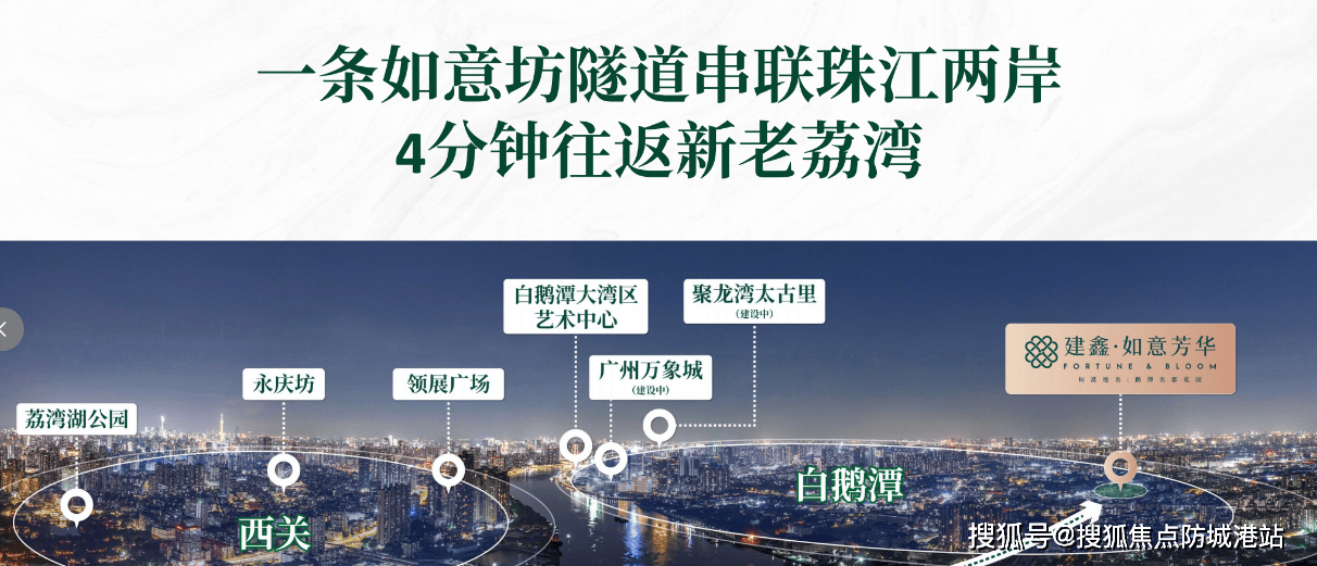 项目的区位优势堪称无可复制,左手千年西关的人文底蕴,右手千亿鹅潭的发展红利,双轴驱动下的生活场景丰富而立体。作为广府文化的原点,周边荔枝湾、沙面岛、永庆坊等文化地标环绕,闲暇时漫步青石板路,看骑楼古巷的斑驳光影,尝一碗地道的艇仔粥,2000 年的人文底蕴便在日常中自然浸润。而占位总固投约 3700 亿的白鹅潭世界级商圈,项目更能享受 3 公里核心资源圈,随着片区城市更新升级,这里将打造成为广州 岭南茶商都 的核心空间载体,构建 文商旅 一体的茶文化主题功能区,未来生活的繁华度与便利性不言而喻。更值得期待的是,白鹅潭滨江岸线正加速兑现,东沙国际商贸港等重点项目稳步推进,将与项目周边的配套形成联动,共同勾勒出高品质滨水生活圈的美好蓝图。